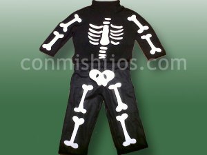 Consejo: para rematar el disfraz de esqueleto, puedes pintar la cara del niño de negro manteniendo la boca y los ojos en blanco